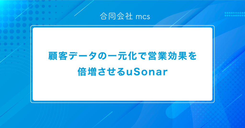 はじめに こんにちは。mcsのT.Mです。 今回は、過去に企業のSalesforce運用担当者として顧客情報管理ツールのuSonar(ユーソナー)の導入・運用を行った経験から、uSonar...