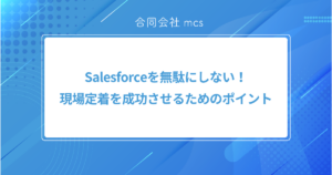 Salesforceを導入したものの、機能が多すぎて使いこなせない、設定やカスタマイズが難しい、または社内リソースが不足していると感じていませんか?合同会社mcsは、そんなお悩みを解決するために、Salesforceの導入・運用支援を行っています。経験豊富なチームが、貴社のビジネス成長をサポートします。まずはお気軽にご相談ください。