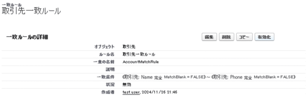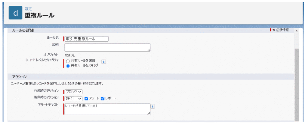 この条件に基づき、Salesforceはデータの重複を検出します。