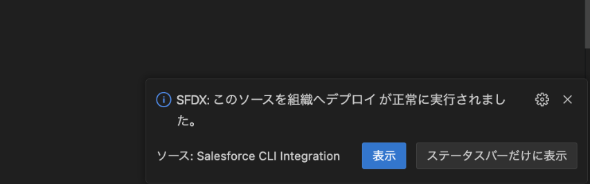 ※「SFDX: マニフェストファイルのソースを組織へデプロイ」を選択するとVSCode上の全ソースが組織にデプロイされるので注意してください。