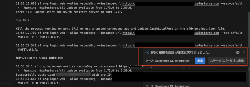 ②VSCodeのSalesforceプロジェクトとSalesforce組織を連携